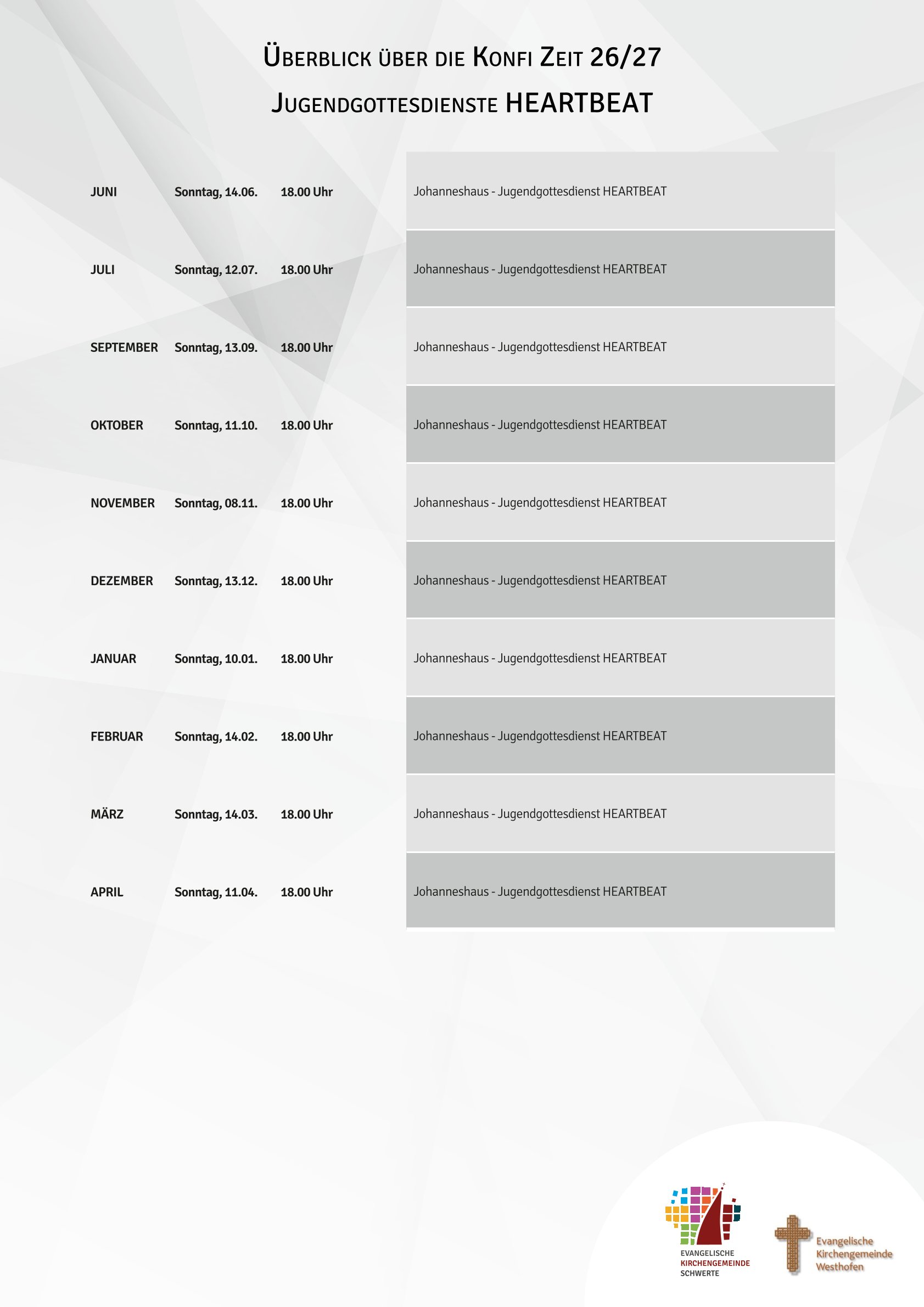 ÜBERBLICK ÜBER DIE KONFI ZEIT 26/27JUGENDGOTTESDIENSTE HEARTBEAT