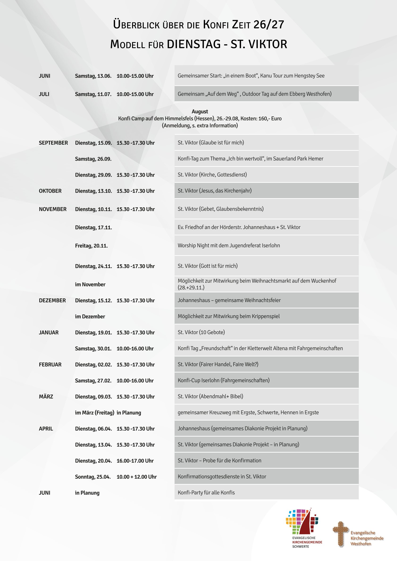 ÜBERBLICK ÜBER DIE KONFI ZEIT 26/27MODELL FÜR DIENSTAG - ST. VIKTOR