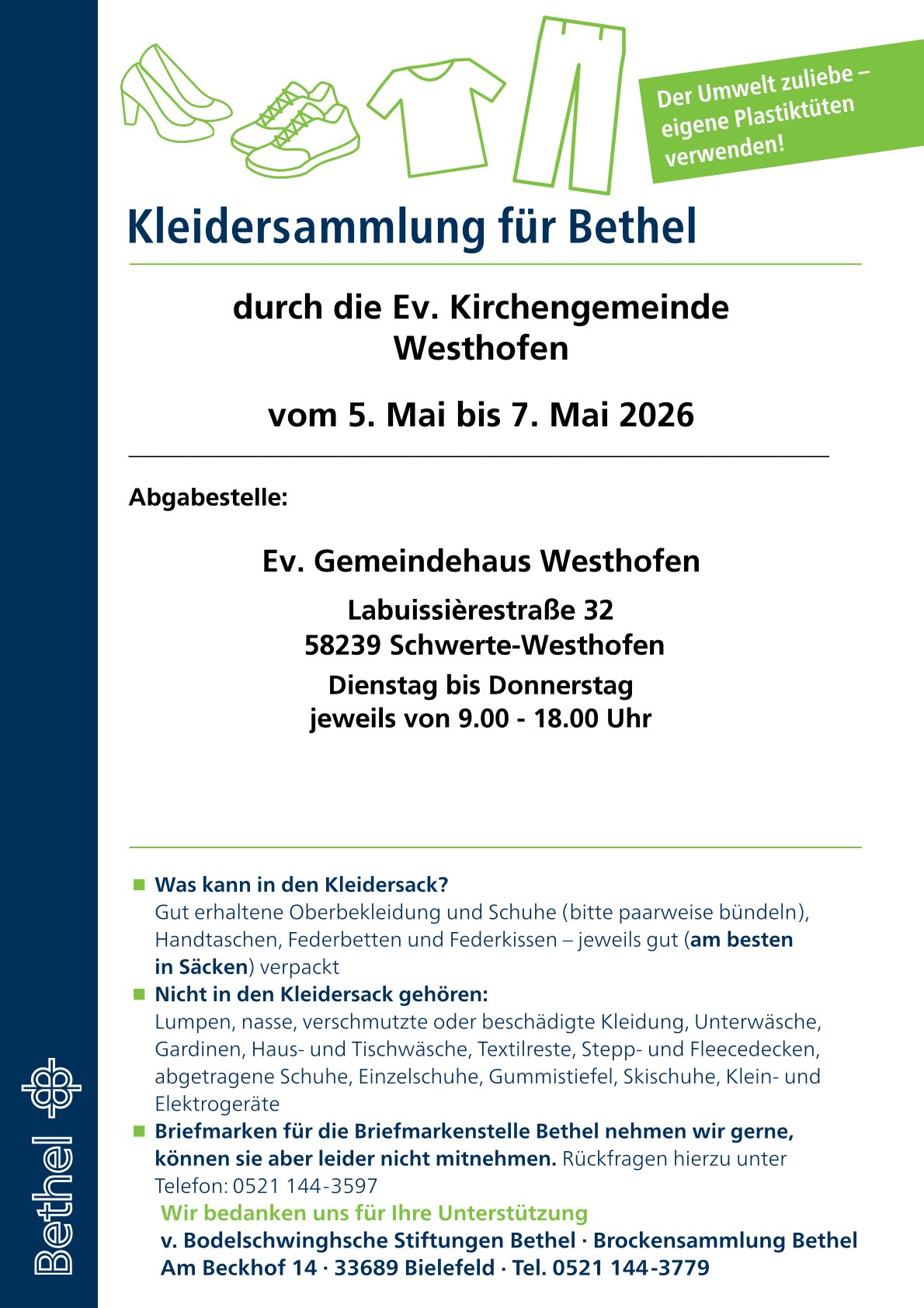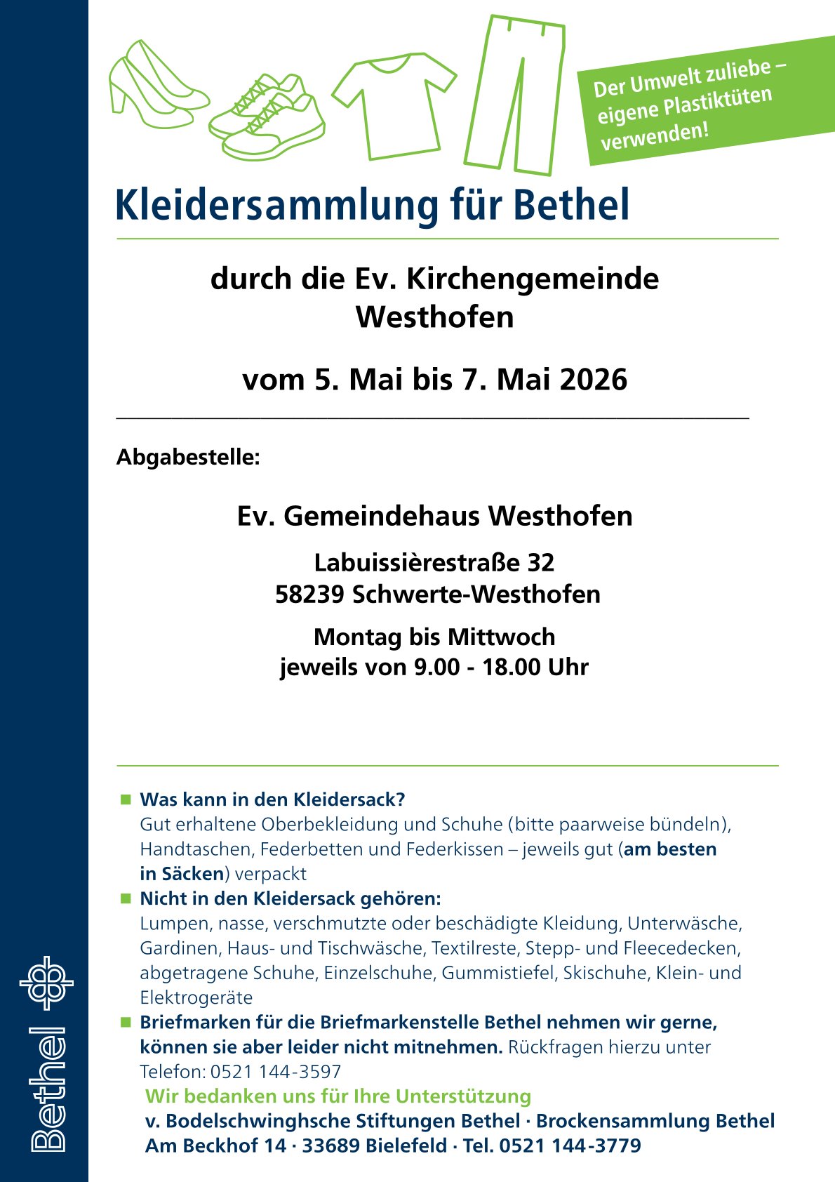 05. - 07. Mai Kleidersammlung für Bethel