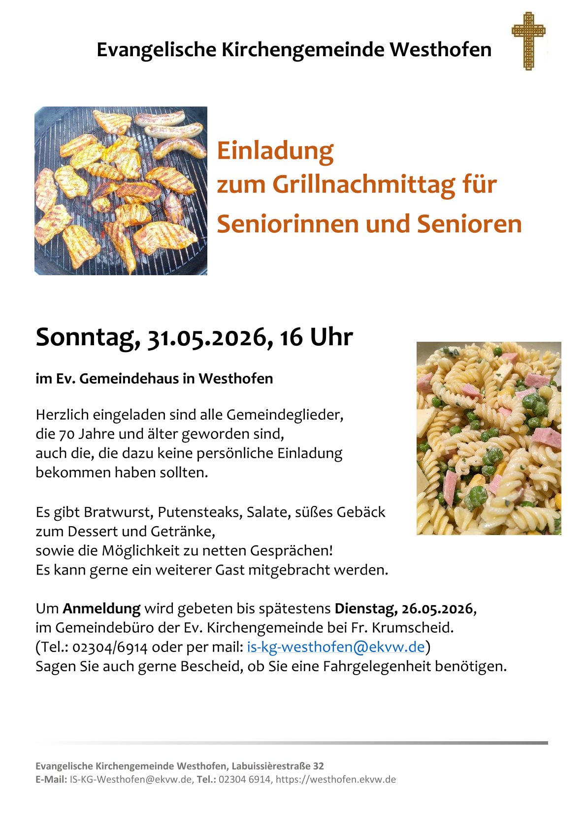 31. Mai Grillnachmittag für Seniorinnen und Senioren