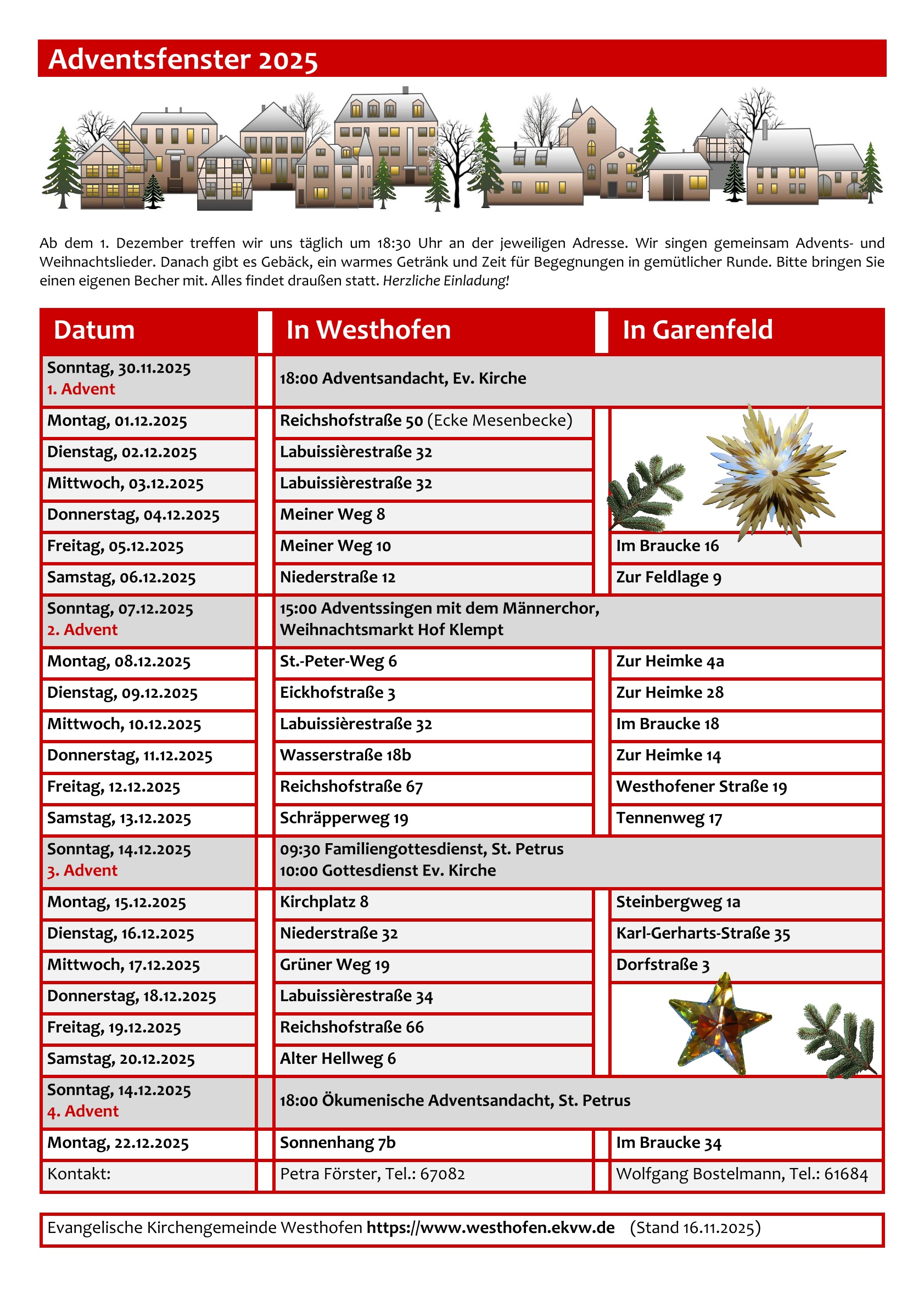 ...weitere Termine der Evangelischen und der Katholischen Kirchengemeinden in Westhofen findern Sie hier