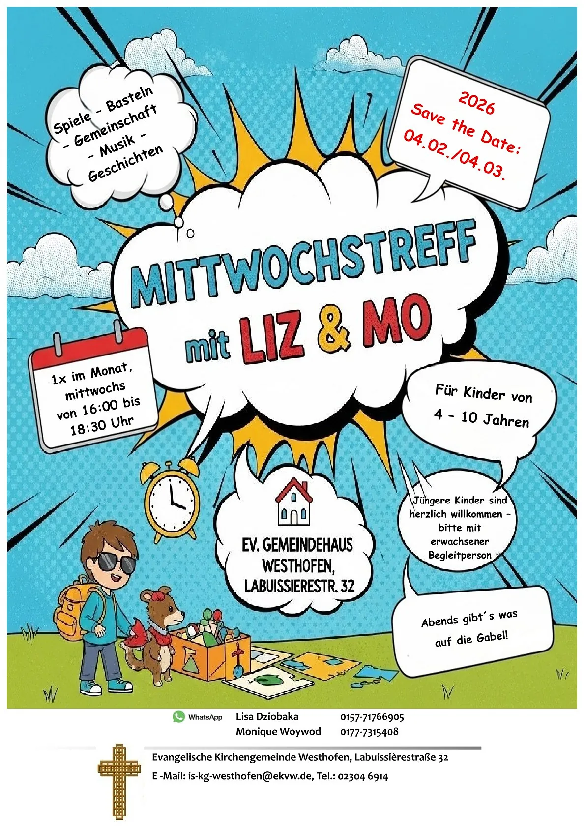 ACHTUNG! Das Treffen der Mitwoch-Kids am Mi, 04.02.2026 muss wegen einer Erkrankung leider ausfallen.